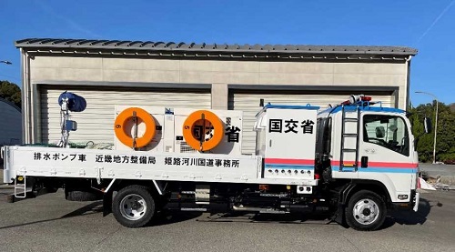 排水ポンプ車は台風や集中豪雨により浸水した場所に出動し、あふれた水を排水する車です。