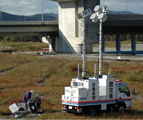 照明車は夜間でも災害復旧作業を行えるようにするために現場を明るくするための車です。