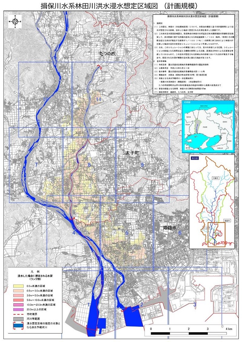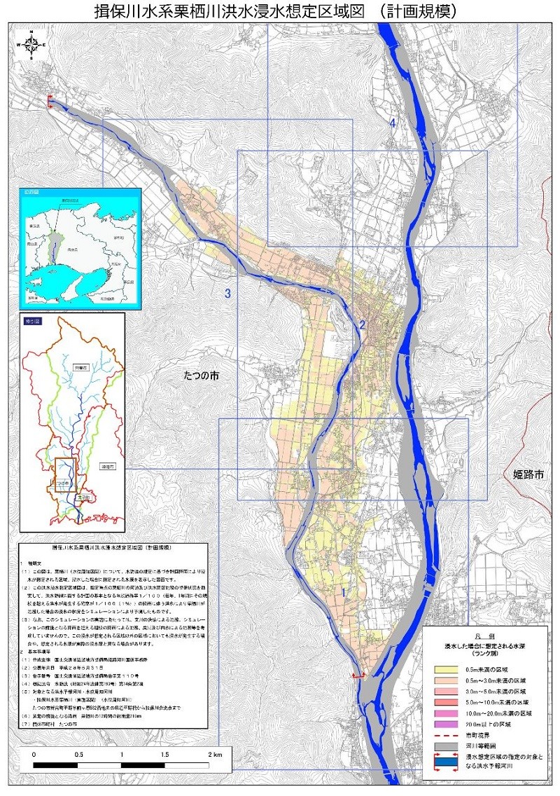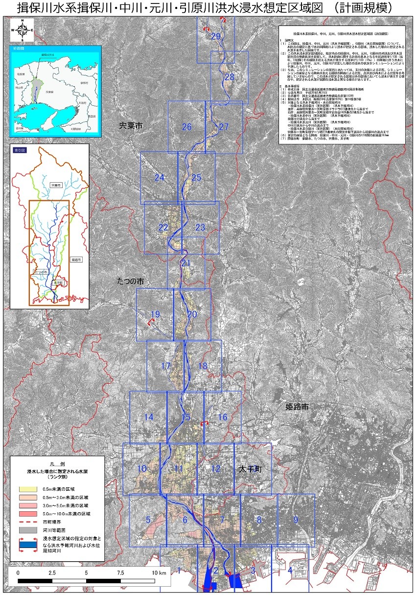 計画規模 揖保川本川・支川全体版(計画規模 浸水想定区域図) 揖保川水系洪水浸水想定区域図(計画規模)1-29 揖保川・中川・元川・引原川のみ(計画規模 浸水想定区域図) 揖保川水系揖保川・中川・元川・引原川洪水浸水想定区域図(計画規模)1-29 林田川のみ(計画規模 浸水想定区域図) 揖保川水系林田川浸水想定区域図(計画規模) 1-11 栗栖川のみ(計画規模 浸水想定区域図) 揖保川水系栗栖川浸水想定区域図(計画規模) 1-4
