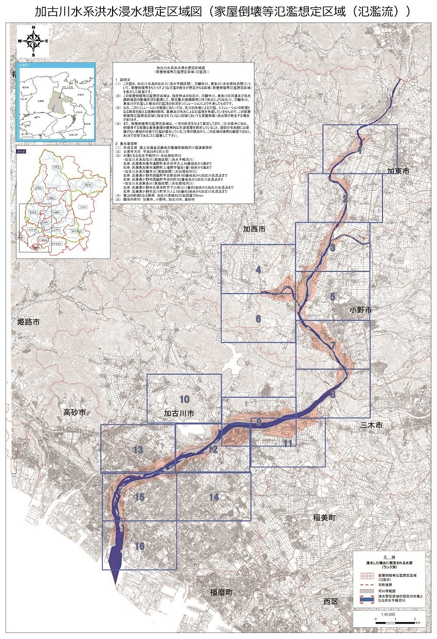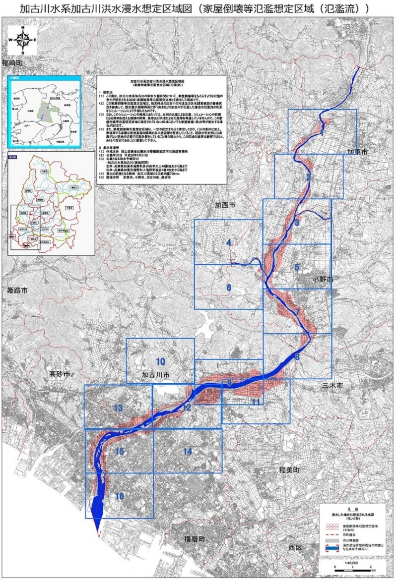 加古川本川・支川全体版(家屋倒壊等氾濫想定区域 氾濫流) 加古川本川のみ(家屋倒壊等氾濫想定区域 氾濫流) 万願寺川のみ(家屋倒壊等氾濫想定区域 氾濫流) 条川のみ(家屋倒壊等氾濫想定区域 氾濫流) 氾濫流 加古川本川・支川全体版(家屋倒壊等氾濫想定区域 氾濫流) 加古川水系 家屋倒壊等氾濫想定区域(氾濫流) 1-16 加古川本川のみ(家屋倒壊等氾濫想定区域 氾濫流) 加古川 家屋倒壊等氾濫想定区域(氾濫流) 1-16 万願寺川のみ(家屋倒壊等氾濫想定区域 氾濫流) 加古川水系万願寺川洪水浸水想定区域図(家屋倒壊等氾濫想定区域(氾濫流)) 条川のみ(家屋倒壊等氾濫想定区域 氾濫流) 加古川水系東条川洪水浸水想定区域図(家屋倒壊等氾濫想定区域(氾濫流))