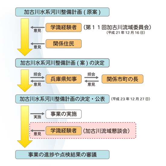 加古川流域では、計11回にわたり加古川流域委員会を開催し「加古川水系河川整備計画(国管理区間)」を、平成23年12月27日に策定しました。