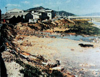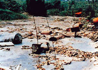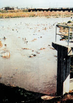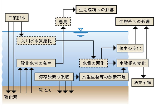 しかし、工業発展に伴って工場からの排水や生活排水が下流の河床にヘドロを堆積させ、魚や昆虫等の生物の姿はいつしか消えていきました。硫化水素が発生して悪臭を放つなど、水質悪化は深刻な問題となり、建設省による平成3年の水質調査では、全国一級河川の中でも汚れのひどい川ワースト3位になってしまいました。このままでは水質悪化は進む一方であり、河川整備に取り組まなければ、清らかな流れは取り戻せない.....。そんな気運が高まり、揖保川・林田川水環境緊急改善推進協議会が発足したのです。