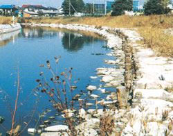水際の緑化及び遊歩道を設置することにより、人々に憩いと語らいの場を提供するとともに、磯間浄化を図るなど自然をいかした河川整備を進めています。