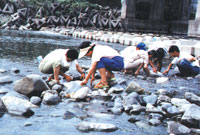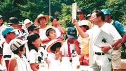 河川環境の保全に、地域住民の協力を仰ぐために、広報活動にも力が入れられました。パンフレットの配布や広報誌・有線放送等で河川美化を訴えたのも、そのひとつです。毎年7月に設けられた河川愛護月間には、地域自治会・老人会・子供会などが協力し、揖保川・林田川クリーン作戦を展開しているほか、河川清掃のボランティア活動も定期的に行われています。