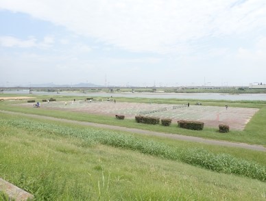 特徴 本緑地は、高砂市の東端にあり、公共施設や住宅地域からも近いため、多くの市民により散策等に利用されています。また、休日には少年野球やテニスの利用も多く、市民にとって地域を代表する河川公園となっております。
