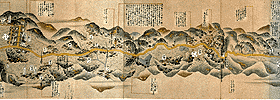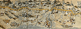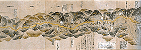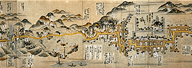 山陽道は姫路城の都市計画に 「慶長播磨絵図」が作成され、姫路城下の建設が進んだ。その城下を通る山陽道の道筋は、新たに都市計画の中に組み入れられたという。当時から道路を重視した都市計画が行われていたことに驚かされる。 |