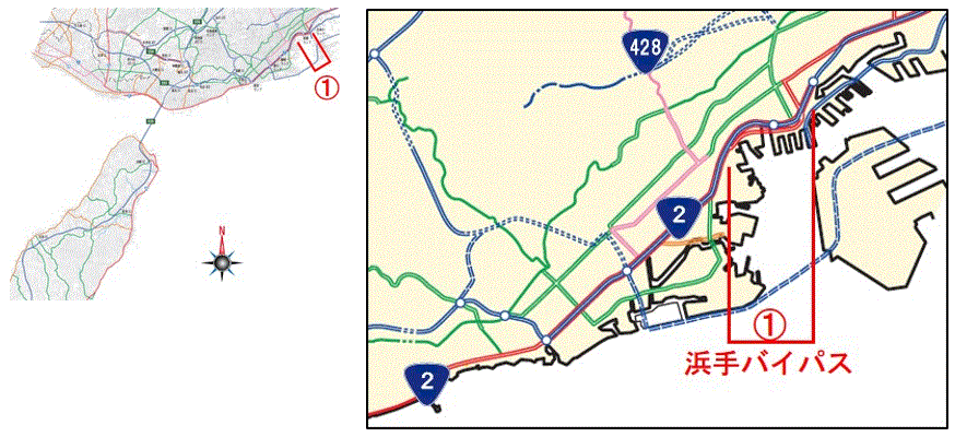 | ① | 2号 | 兵庫県神戸市中央区浜辺通 ~東川崎町(浜出バイパス) |