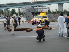 平成20年8月30日(土)に西宮市の甲子園浜周辺において行われた合同防災訓練に参加しました。