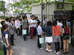 5/22(木)に、大阪産業大学人間環境学部都市環境学科の1年生~3年生の総勢26名の方に、課外授業の一環として、国道43号環境対策の一つである土壌大気浄化実験施設と付近の大気常時観測局を見学していただきました。