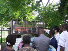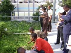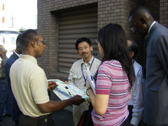 平成20年9月16日(火)、JICA集団研修生7名の方を対象として、最初に国道43号環境対策としてどんな取り組みをしているかを紹介するビデオを見ていただきました。その後、土壌の浄化機能を用いて、自動車排出ガスなどによって汚れた空気をきれいにする土壌大気浄化実験施設(西宮市浜脇町)と特殊車両取締基地 (尼崎市向島町)を現場見学していただきました。