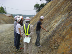 - 実際に法面の岩に触れたり、将来歩道となるところを歩いたりと、日頃、学内では学べないことばかりで、驚きの連続でした。