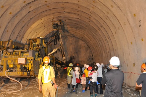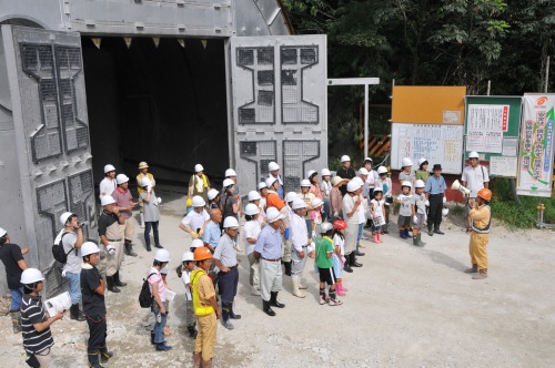 「道路ふれあい月間」の取り組みのひとつとして、平成21年8月23日(日)西脇市役所主催のもと、普段目にすることの少ないトンネル工事の現場と国道175号の改良工事概要を皆様に知って頂くため、一般の方を対象として、国道175号西脇バイパス4車線化事業のうち西脇トンネルの工事現場見学会を開催しました。