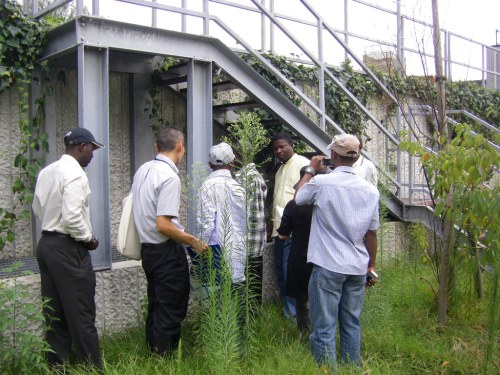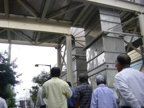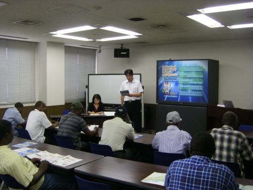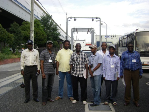 平成21年9月3日(木)、「アフリカ地域道路維持管理技術(B)コース」の方を対象として、兵庫国道事務所において国道43号環境対策を紹介するDVDを見ていただきました。その後国道43号に向かい、西宮市浜脇町において大気常時観測局、土壌を用いた大気浄化実験施設、尼崎市西向島町の特殊車両取締基地の見学をしていただきました。