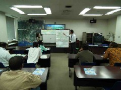 平成22年10月14日(木)、JICA研修「環境・社会配慮を取り入れた持続可能な社会資本整備事業」コースの方を対象として、最初に兵庫国道事務所において、寺山副所長による国道43号環境対策の講義を行い、引き続き環境対策のビデオを見ていただきました。その後国道43号に向かい、西宮市浜脇町の土壌を用いた大気浄化実験施設、尼崎市西向島町の特殊車両取締基地・特殊車両自動観測装置・アクティブ遮音壁・大気常時観測局の見学をしていただきました。