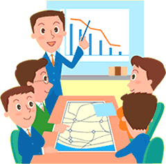 道をつくる計画をまわりに住んでいる人に説明します。 計画の良いところや工事の進め方も話し合います。