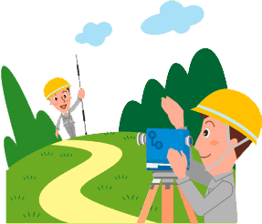土地の高さや広さなどをはかり、どういう道路をつくるかを考えます。