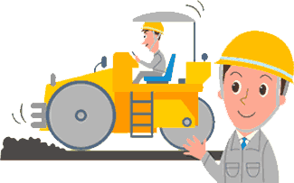 いよいよ道をつくります。 専門の機械(きかい)を使い、安全に工事をすすめます。
