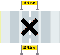次は、古い道を通行止めにして、新しくできた道に人と車を通します。