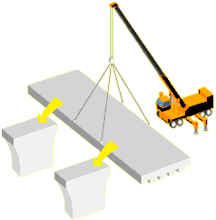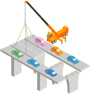 新しくできた道に人と車が通っているあいだ、古くなった橋をはずし、 つくりかえます。