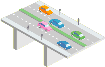 国道2号にある、明石大橋(あかしおおはし)は、人と車が通れる橋です。 でも、毎日、朝と夕方になると車がじゅうたいして、みんな困っていました。 そこで じゅうたいをなくすため、橋の上の道はばを広げることになりました。 しかし 多くの人と車がこの橋を使うので、 工事のために橋を通行止めにできません。