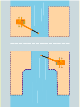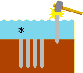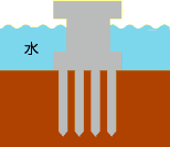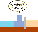 ②最初にクレーン車が置けるように、 川の中に島をつくります。