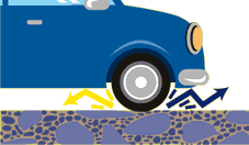 走っている車のタイヤと道路の表面(ひょうめん)がふれると、普通のほそうでは空気がにげるすきまがないので空気がおされてはじける音がします。