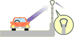 車が通るときに出る音は、普通のかべは上の部分(ぶぶん)がまっすぐなのでかべをつたって外へにげます。