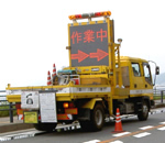 災害(さいがい)がおきた時や、道路のこうじをする時に、じこをふせぐためのじょうほうを表示(ひょうじ)します。