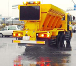 気温が低い時にじこが起きないように、こおるのをふせぐ薬を道路にまきます。