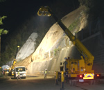 夜のあいだに工事しなければならないときに、工事げんばを明るくてらします。