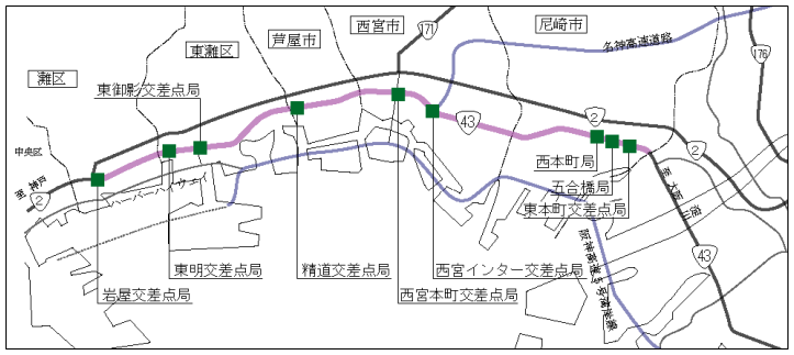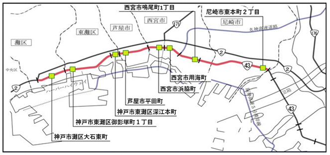 全国道路・街路交通情勢調査箇所(国道43号・兵庫国道事務所管内)