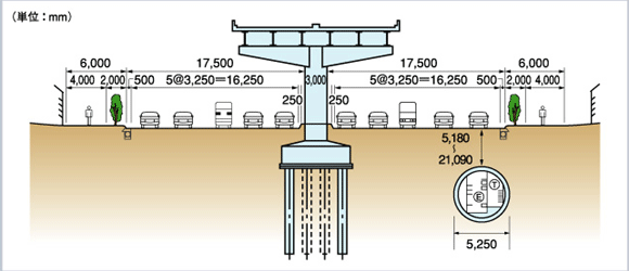 道路には上下水道やガスの管があり、電気、電話などの情報通信ケーブルは電柱や電線が路上に架かっています。そこで、都市機能に重要な基幹インフラの管や線を地下に収容するために埋設した施設が「共同溝」です。空間を有効利用しライフラインをネットワーク化、路上工事を削減し、都市の景観や安全性を向上します。
