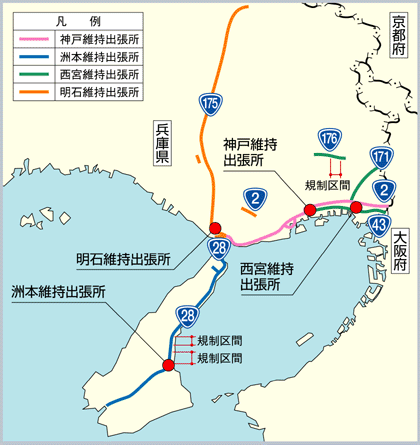 | 2号 | 大阪市西淀川区佃 (出張所の管理境界)神戸市・明石市境 ~神戸市西区玉津小山 |