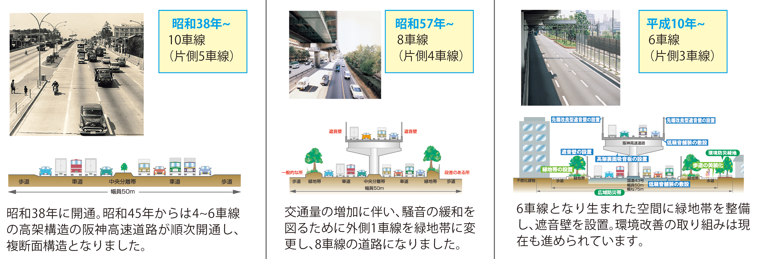 | 昭和45年2月 | 国道43号の上に阪神高速道路神戸西宮線が供用開始 |