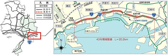 | 昭和38年1月 | 尼崎市辰巳橋から神戸市灘区浜田町までの供用開始(18.2km) |