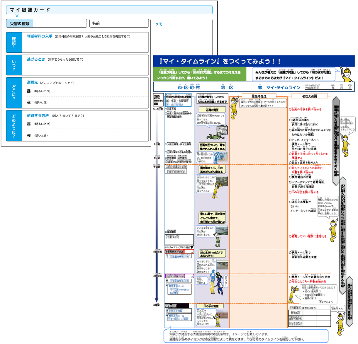 自分や大切な家族の命を守るため、マイ避難カードとマイ・タイムラインを作成し、水害に備えましょう。