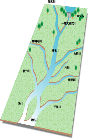 猪名川に生息する生き物や植物の分布はこのようになっています。