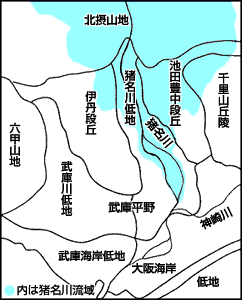 | 北摂平野 | 千里山丘陵 池田・豊中段丘 伊丹段丘 猪名川低地 |