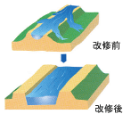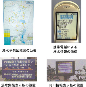 | 被害軽減対策 | 出水時の安全対策及び日頃からパンフレット等での住民へ洪水の注意を呼びかけます。 |