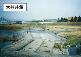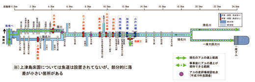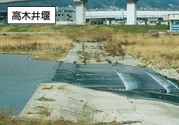 - 平成18年度より実施した横断工作物影響調査の結果より、海域から遡上しているアユの遡上阻害となっている大井井堰、三ヶ井井堰について優先的に簡易魚道を整備する。(大井井堰については、本年度中に簡易魚道を整備する)