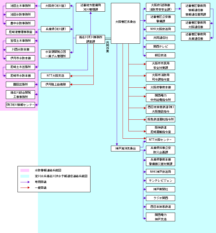 - このほか洪水予報の必要が認められ、猪名川河川事務所または大阪管区気象台のいずれかより要求があったとき