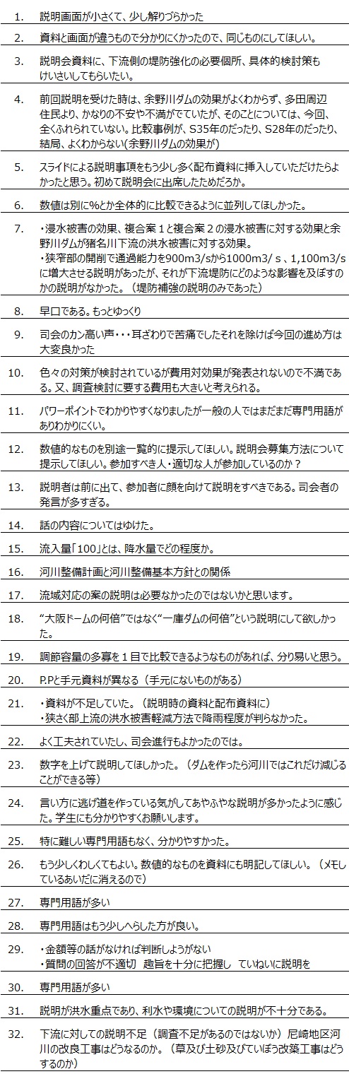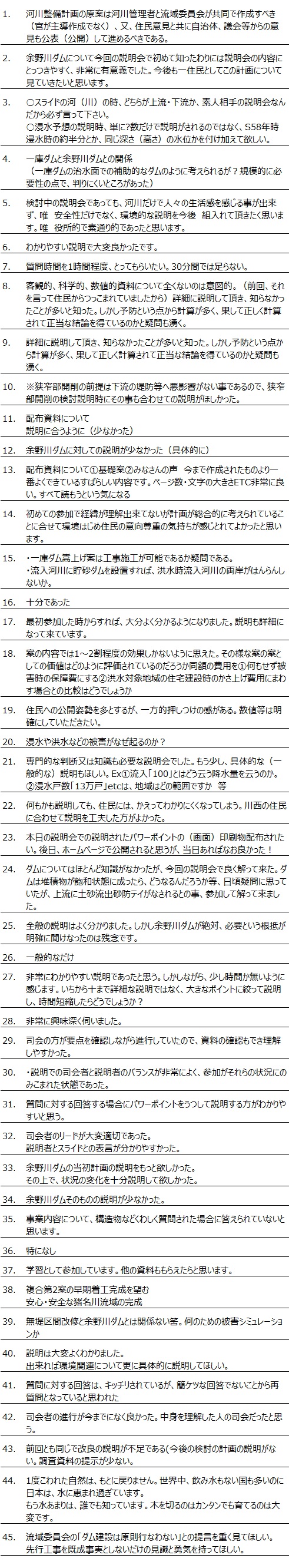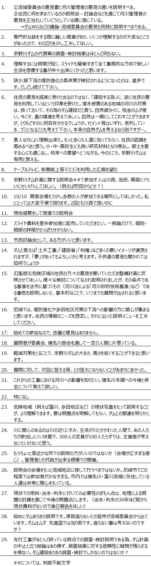 余野川ダム計画に関する説明会 (基礎案)アンケート結果