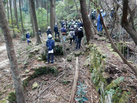 尻剣谷上流部にある銅鉱石等の精錬所跡を見学し、那智川における地域の歴史を学びました。