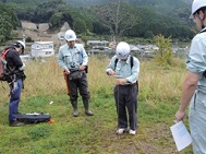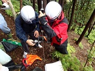 斜面崩壊メカニズムの解明や危険度評価への活用を目的に、那智川流域の斜面における土層厚の計測を実施しました。