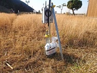 雨水サンプラーの設置のようす (定期的にサンプルを採取する) |