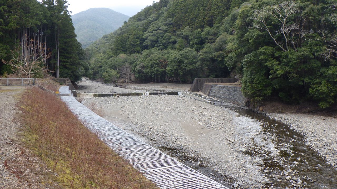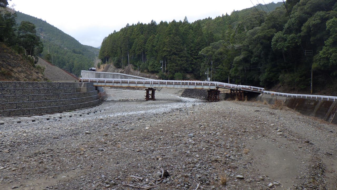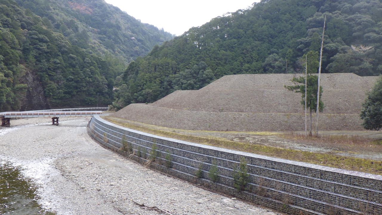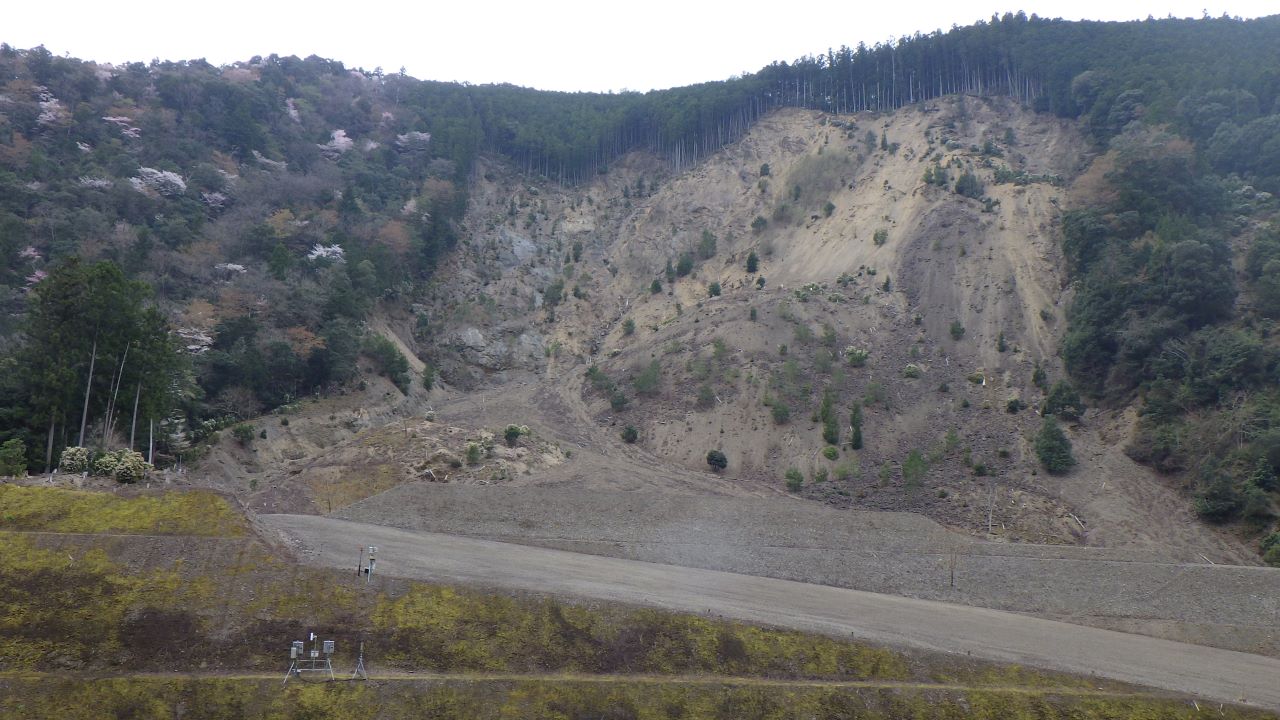 三越川では発災当時、幅200m、高さ180m、長さ330mの崩壊が発生し約50万m3にのぼる崩壊土砂が発生しました。緊急対策工事により1基の砂防堰堤、1基の床固、護岸工が完成しています。ただ土砂流出が依然として続き土砂災害等が危惧されるため、集落・市街地及び緊急輸送路に甚大な被害が発生するおそれがあります。このため、継続的な土砂流出や顕著な河床上昇を防止するための恒久的な対策を行います。