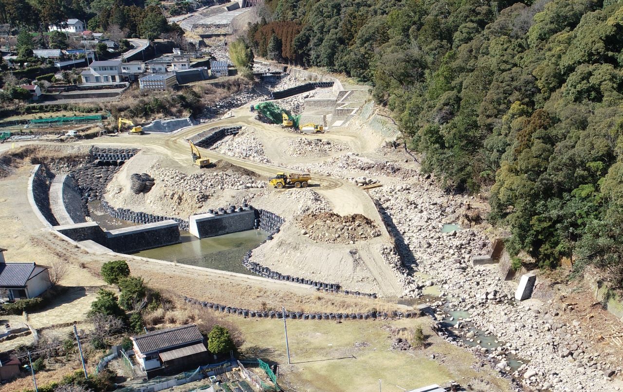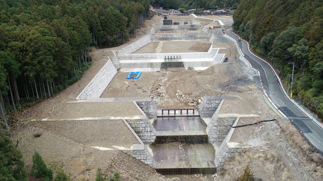 那智川地区では発災当時、那智川に流れ込む各支川で多くの斜面崩壊が発生し、流れ出た土石流により多くの人的被害、物的被害が発生しました。現在、緊急対策工事により8つある支川において計15基の砂防堰堤が完成しています。
