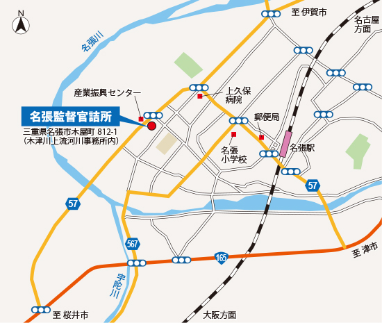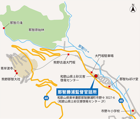 事務所案内図 所在地 紀伊山系砂防事務所 所在地 〒637-0002 奈良県五條市三在町1681 電話番号 0747-25-3111(代表) アクセス JR和歌山線「北宇智駅」より徒歩で約30分近鉄吉野線「福神駅」よりタクシーで約5分 五條監督官詰所 所在地 〒637-0408奈良県五條市大塔町辻堂1-3 (猿谷ダム管理所内) 電話番号 0747-36-0033 田辺監督官詰所 所在地 〒646-1101和歌山県田辺市鮎川2567-1 (大塔総合文化会館内) 電話番号 0739-48-1015 那智勝浦監督官詰所 所在地 〒649-5302和歌山県東牟婁郡那智勝浦町市野々3027-6 (和歌山県土砂災害啓発センタ-内) 電話番号 0735-55-0160 名張監督官詰所 所在地 〒518-0723三重県名張市木屋町812-1 (木津川上流河川事務所内) 電話番号 0595-63-0452