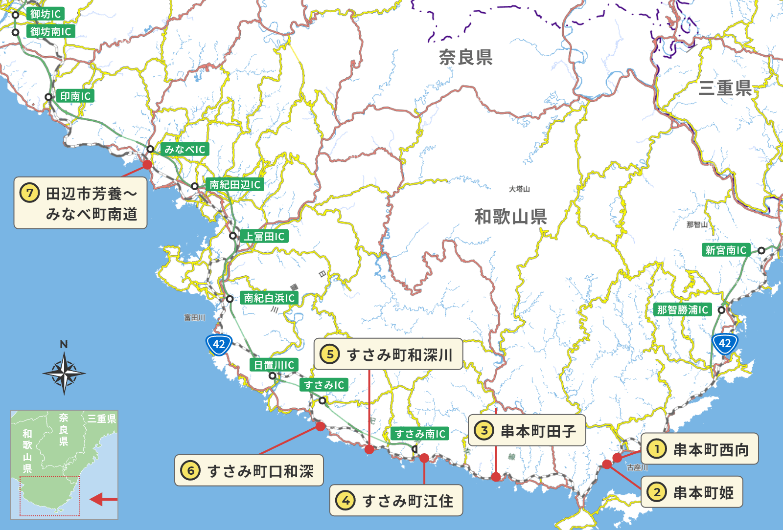 | 7 | 42号 | 田辺市芳養~ みなべ町南道 |