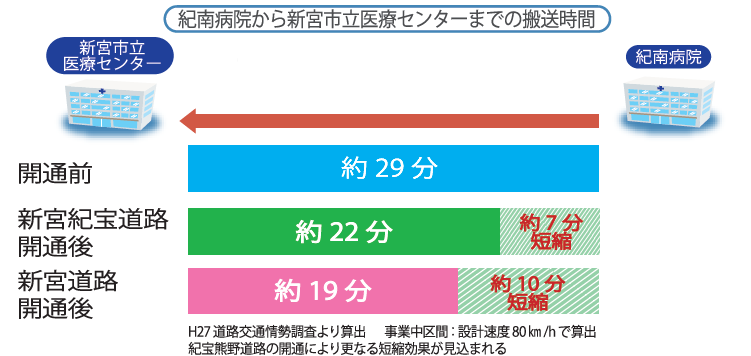 紀南病院から新宮市立医療センターまでの、搬送時間の短縮、搬送時の処置の安定、患者への負担軽減等の効果が生まれ、安全安心な救急医療サービスの向上に寄与し、地域医療連携※を支援します。